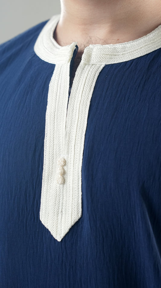 ثوب كحلي أزرق بأكمام طويلة