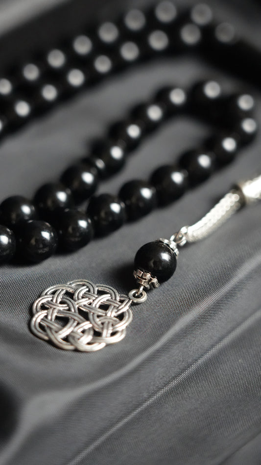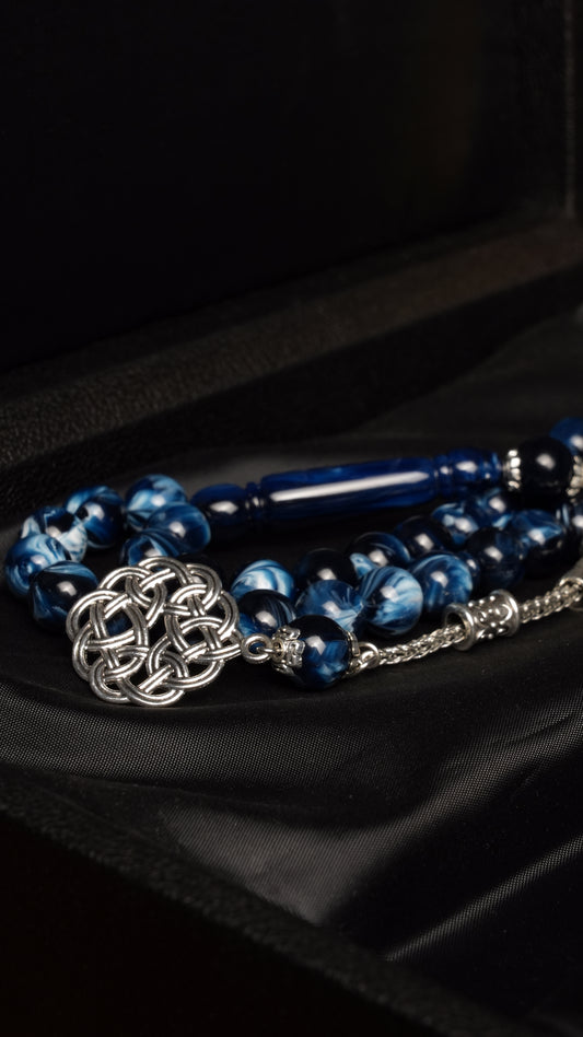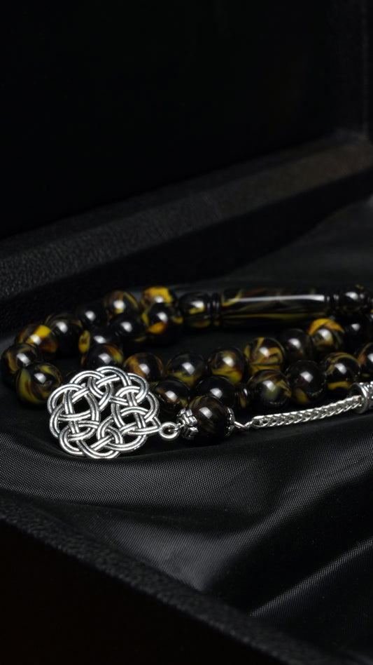 حبّاتها المصنوعة من الراتينج المصقول يدوياً تنساب بنعومة — متوازنة الوزن، دقيقة الحركة — لتعزز التركيز والطمأنينة في ذكرك.