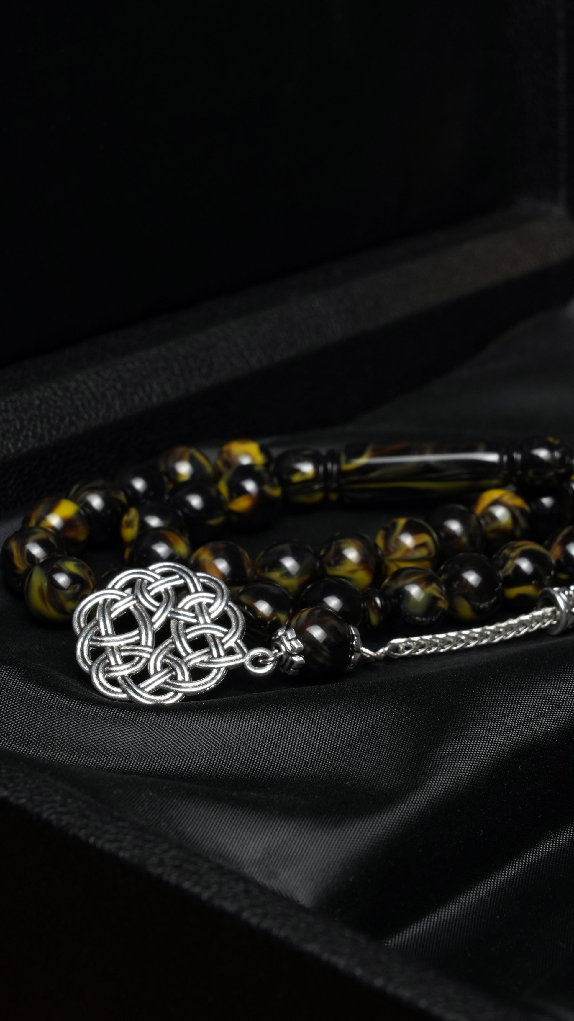 تتميز هذه المسبحة ذات الـ 33 حبة بتصميم معدني مستوحى من الطراز العثماني مزخرف بشكل جميل، ومربوطة بحبل مطاطي متين للغاية — مصممة لتحمل أكثر من 50 كجم من قوة الشد دون أن تنكسر. صُممت للاستخدام اليومي، حيث يضمن جودة المواد والحرفية أداءً طويل الأمد وتجربة ذكر سلسة.