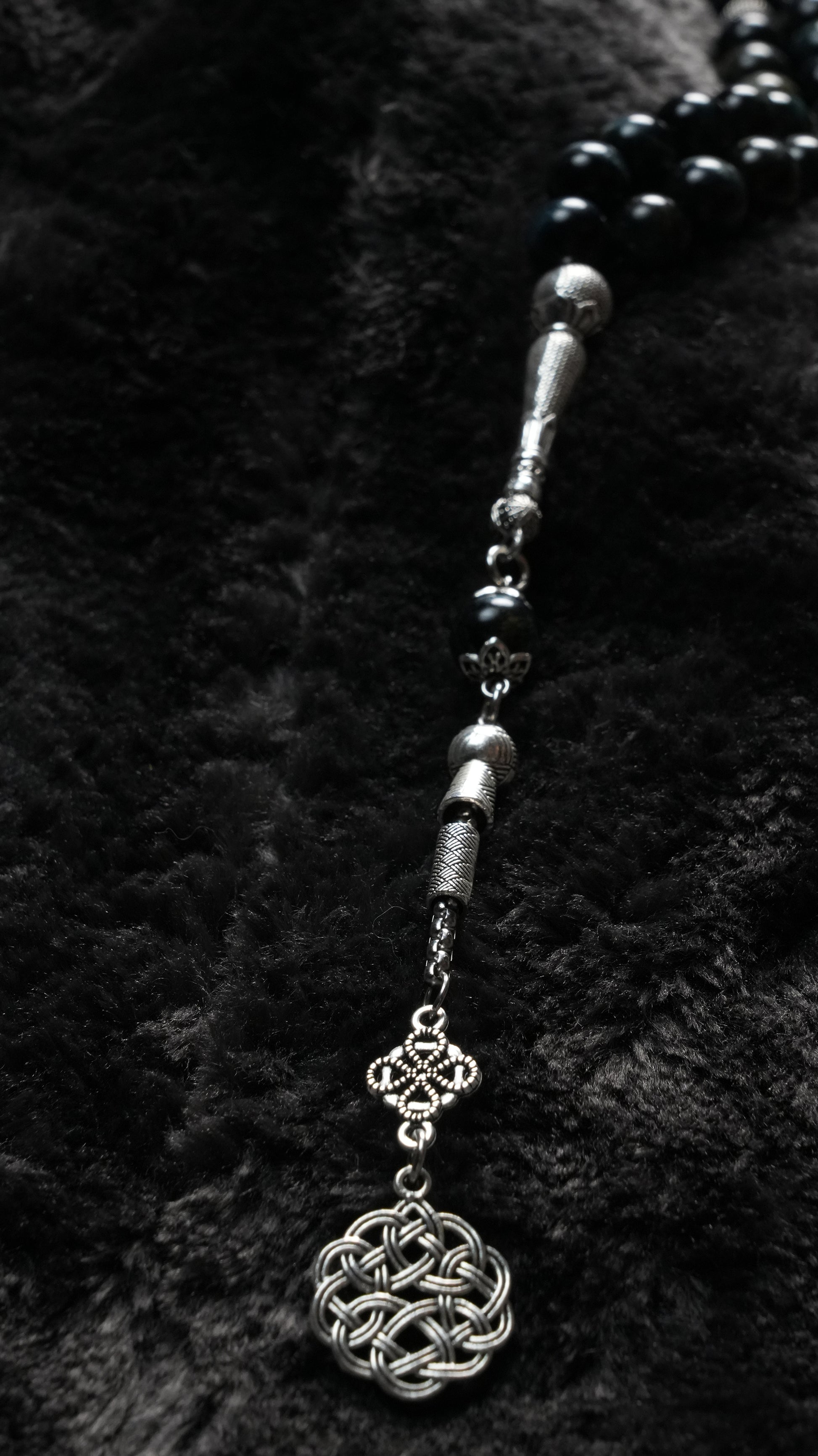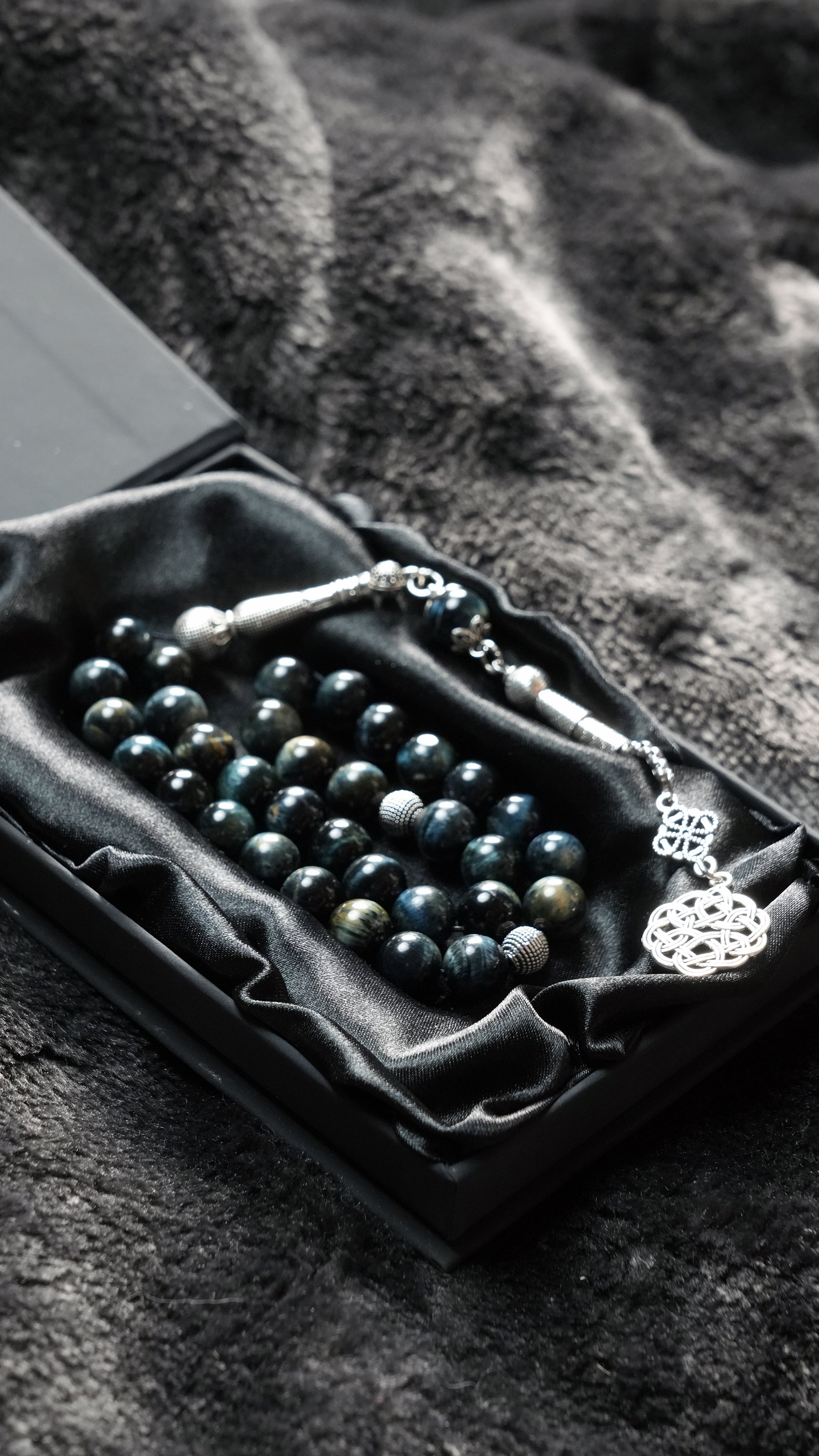 This 33-bead Misbaha features a beautifully detailed Ottoman-style metal design and naturally extracted stone beads, strung on an extremely durable rubber cord—engineered to withstand strong pulling force without breaking. Built for everyday use, the quality of the materials and craftsmanship ensures long-lasting performance and a smooth dhikr experience.