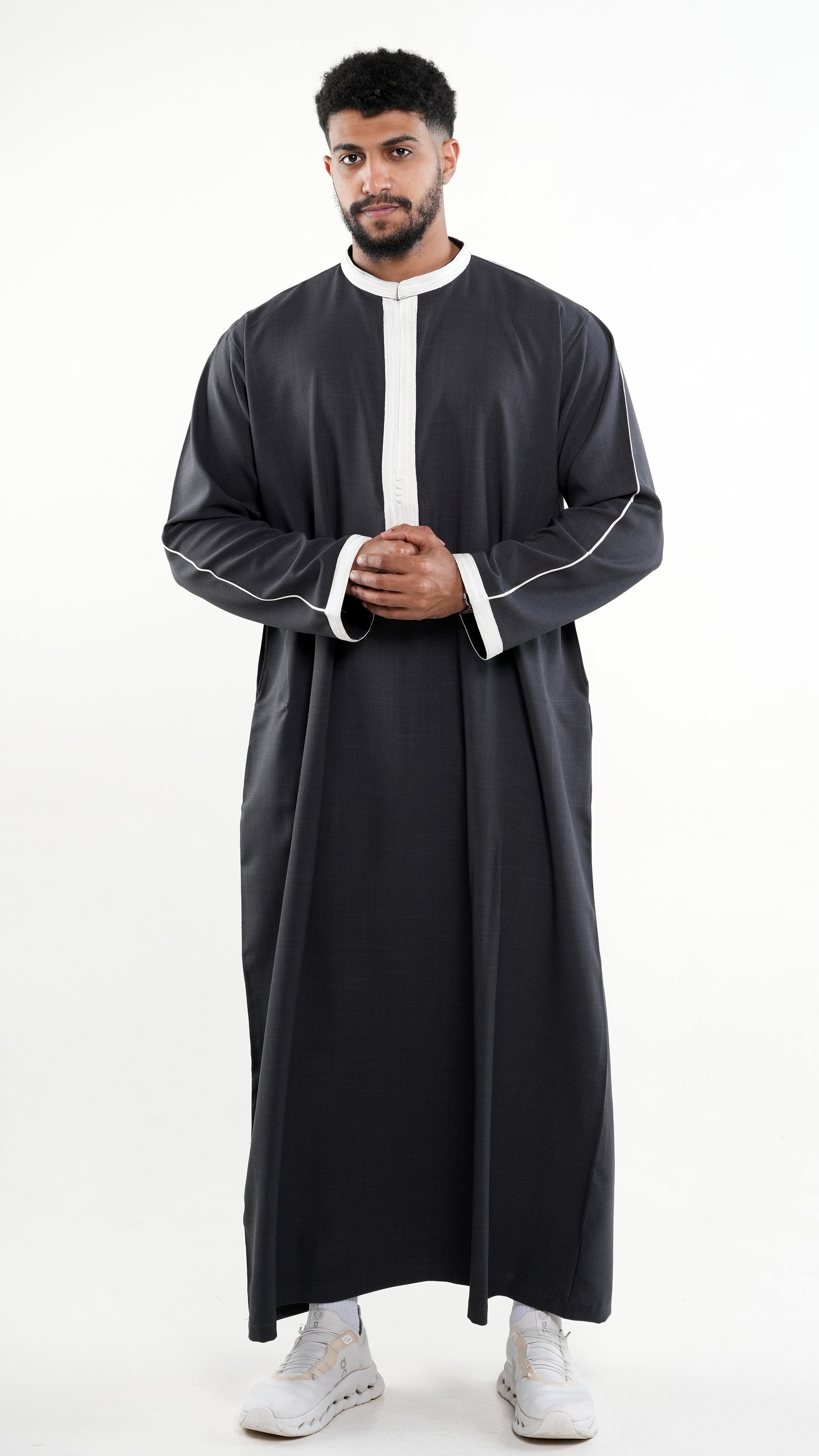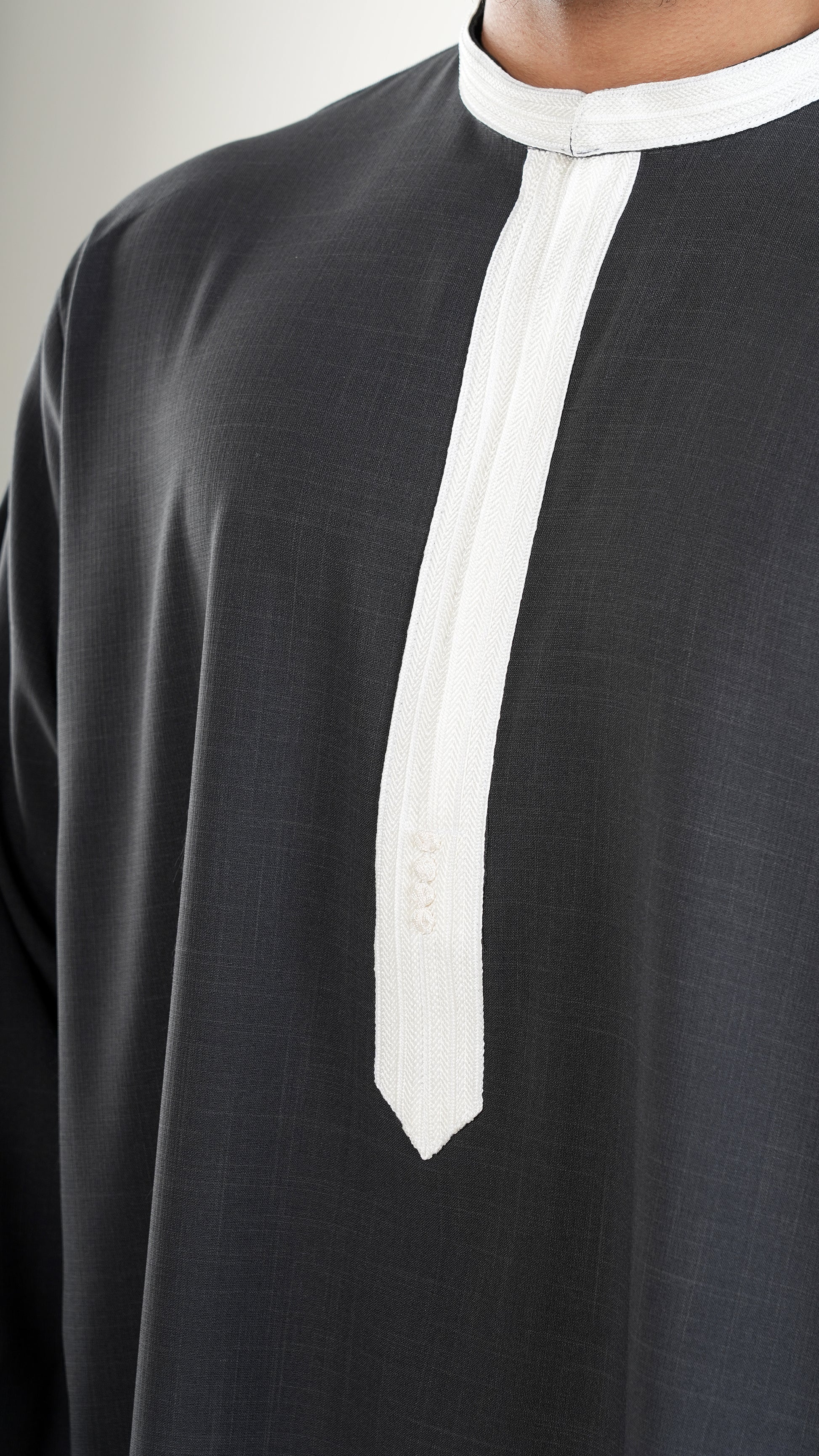 Please note: As our thobes are handcrafted, some pieces may have small, washable marks (like chalk or dust) from the tailoring workshop. These are normal and will come off easily with the first wash.